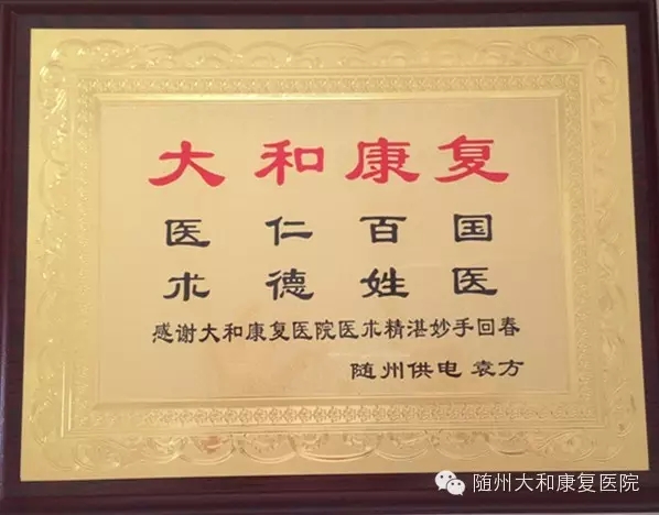 一块牌匾不仅代表着患者对大和医院的感激之情,更是对大和医术上的认可。而在经后的工作中,我们要不断的提高医疗技术水平和患者服务并时刻牢记“大爱、和善、务实、进取”的院精神以此更好的服务于广大患者。